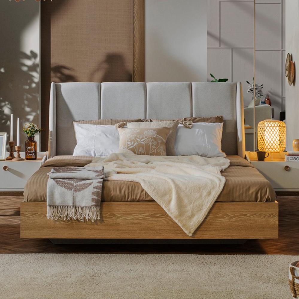 - يتميز سرير سوبر كنج بلوح رأس مبطن يوفر لمسة فاخرة ويضفي لمسة راقية على ديكور الغرفة، كما يمنحك دعماً مريحاً أثناء القراءة أو الاسترخاء قبل النوم.
