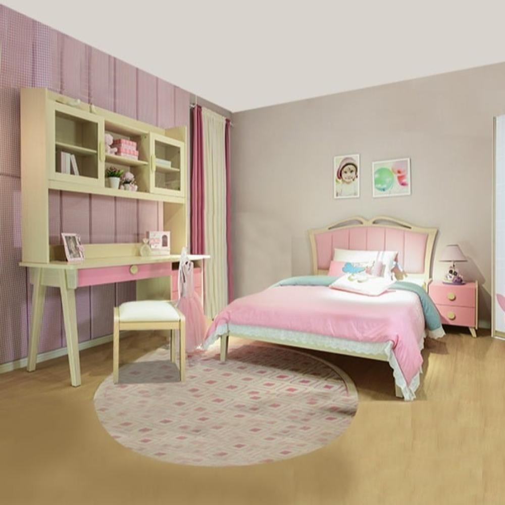 انعكاسًا لروح الأنوثة والأناقة، غرفة نوم بينك من ليلي تتميز بتصميم لافت بتدرجات الوردي وتفاصيل خشبية، مع مكتب دراسة مدمج.