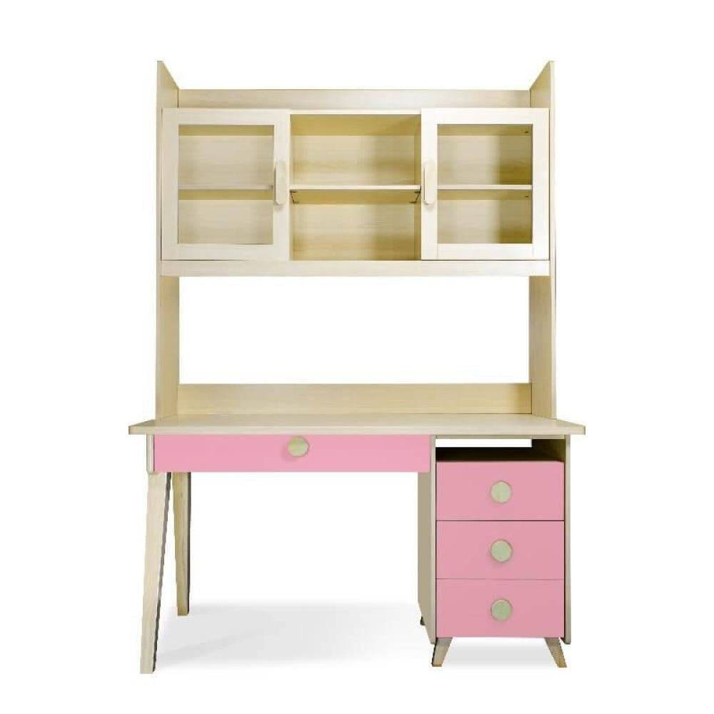 انعكاسًا لروح الأنوثة والأناقة، غرفة نوم بينك من ليلي تتميز بتصميم لافت بتدرجات الوردي وتفاصيل خشبية، مع مكتب دراسة مدمج.
