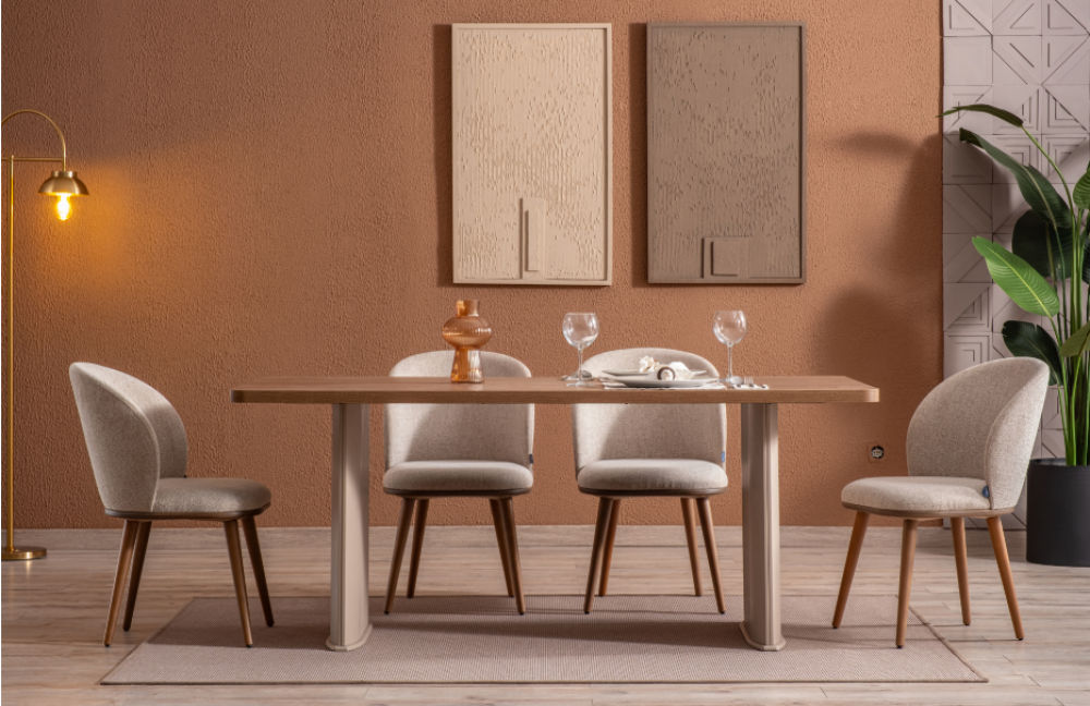 طاولة طعام براند توفر توازنًا مثاليًا بين الجمال والراحة، بسطح مصمم لتوفير مساحة واسعة ومريحة لتناول الوجبات.
