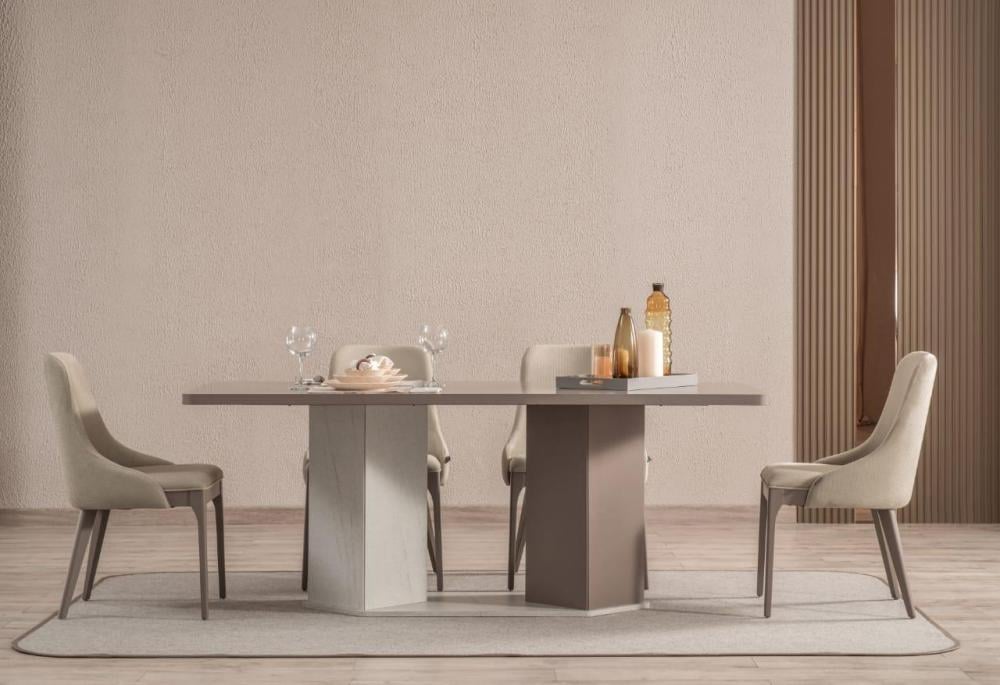 تصميم فريد لطاولة الطعام كارمن مع قاعدة متميزة، تضيف لمسة من الرقي لأي غرفة طعام وتضمن استقرارًا مثاليًا.