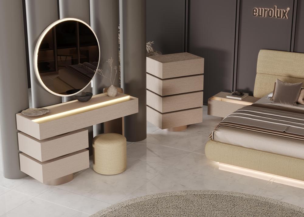 غرفة نوم سنتر تجمع بين الأناقة العصرية والتصميم الراقي، مقدمة بلون بيج فاتح جذاب لتضفي لمسة من الفخامة والتميز على مساحة نومك.