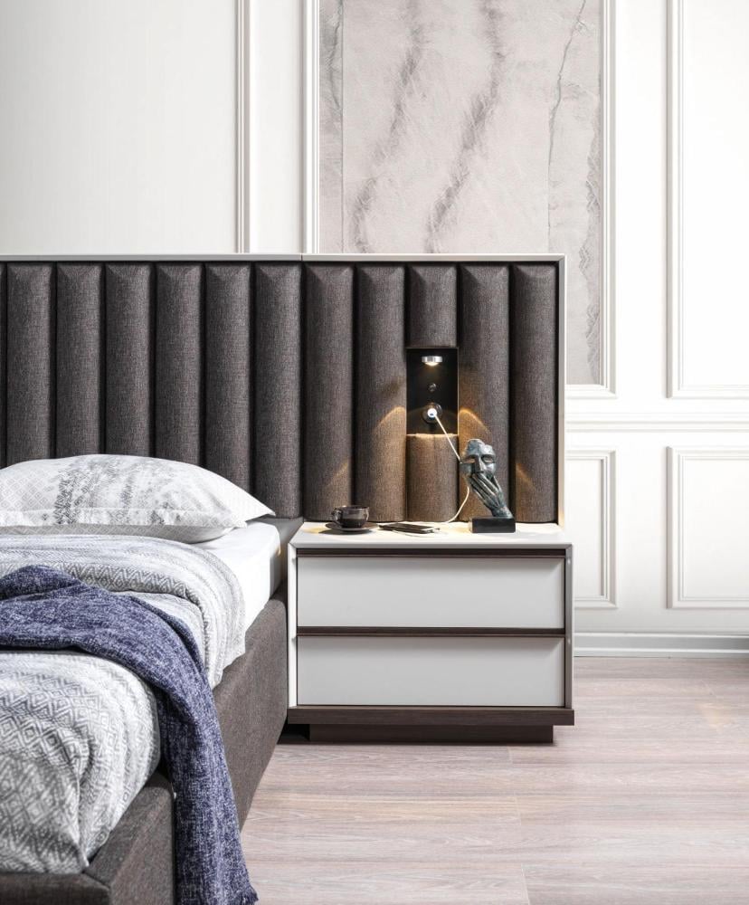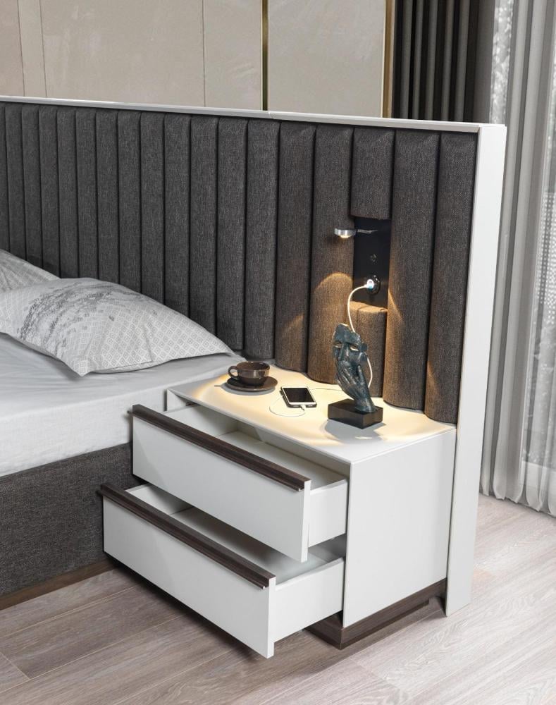 القطع : سرير 200 سم مع التخزين- 2 كمودينة