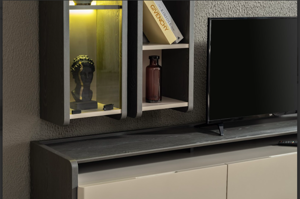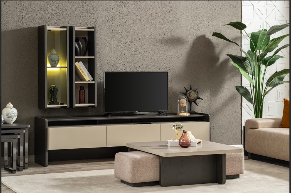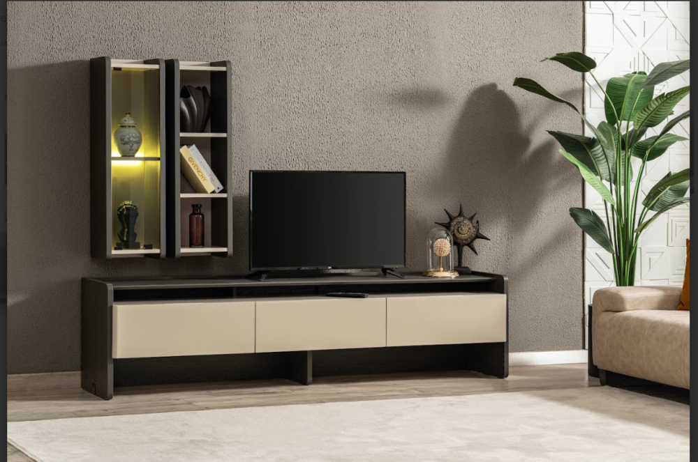 أضف لمسة من الأناقة العملية إلى غرفة المعيشة مع مكتبة تلفزيون أفور. تتميز بتصميم عصري وهيكل خشبي متين يناسب مختلف الديكورات، مما يجعلها إضافة مثالية لتنسيق وتنظيم أجهزتك وملحقاتها.