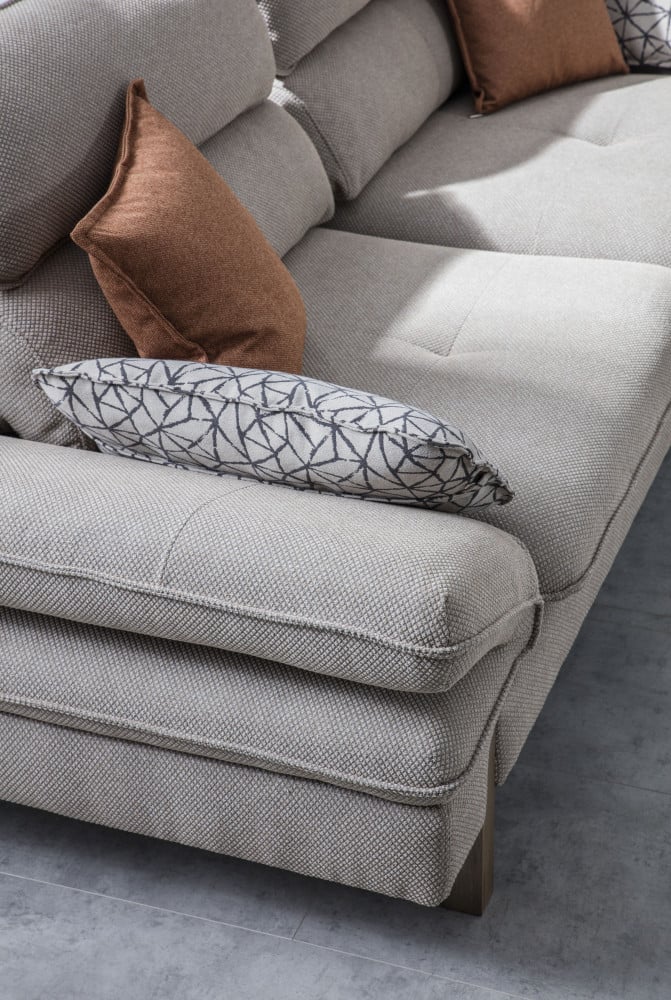 استمتع براحة فائقة وأناقة لا تضاهى مع كنبة سرير من لوزي. تتميز بجلود شمواه ناعمة، وهيكل خشبي متين، وأرجل ذهبية عصرية. تحول بسهولة من كنبة إلى سرير، مما يجعلها مثالية للمساحات الصغيرة.