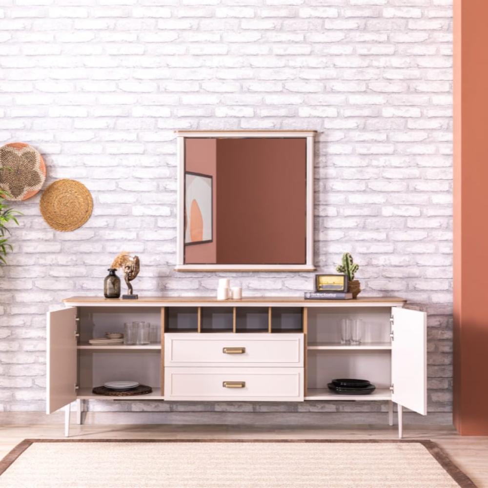 كونسول موجلا بتفاصيل دقيقة ومرآة أنيقة، يجمع بين الوظيفة والديكور ليكون قطعة مميزة في غرفة الطعام.