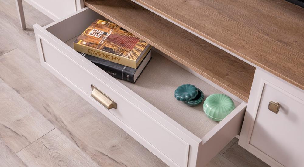 اجعل تنظيم غرفة المعيشة أسهل مع طاولة تلفزيون مع رفوف من موجلا. توفر رفوف إضافية لتخزين الأجهزة والكتب والديكور بشكل منظم