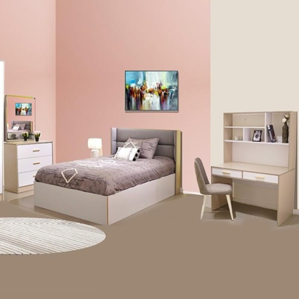 القطع : سرير 120سم - كمودينة - مكتب دراسي مع رف - تسريحة