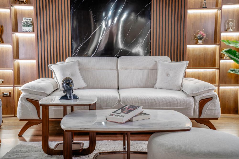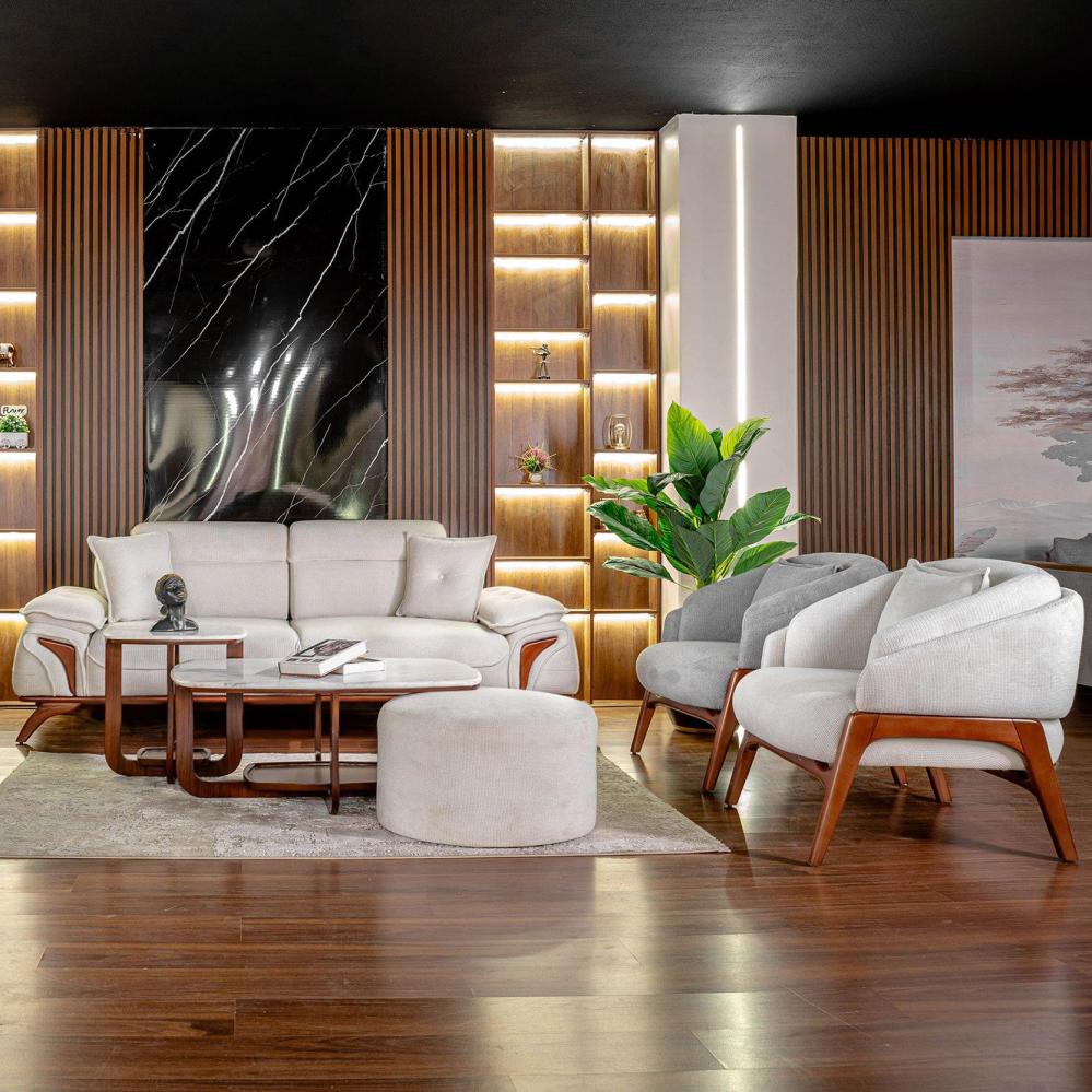 استمتع بأجواء من الفخامة والراحة مع كنب صاله من توسكا. مصنوع من أجود أنواع خشب الزان، هذا الكنب هو تجسيد للجمال الطبيعي والمتانة. تصميمه العصري والأنيق يتناسب مع مختلف الديكورات