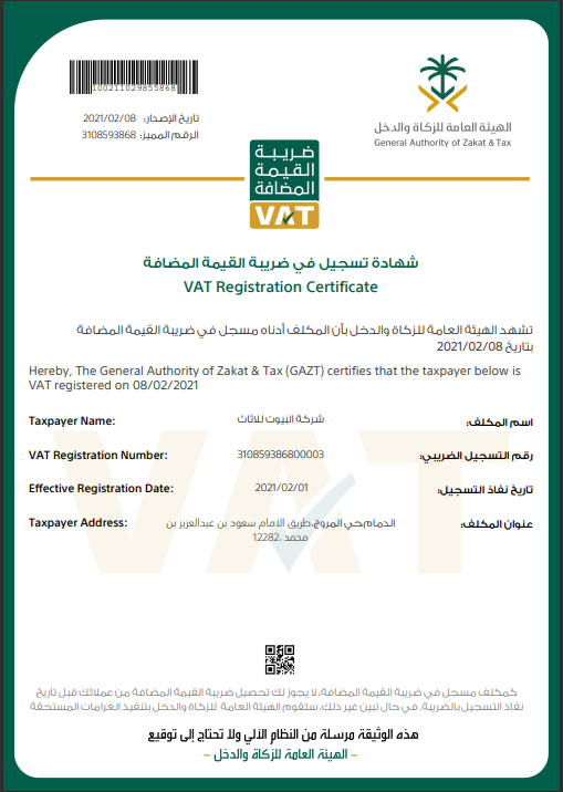Added tax certificate