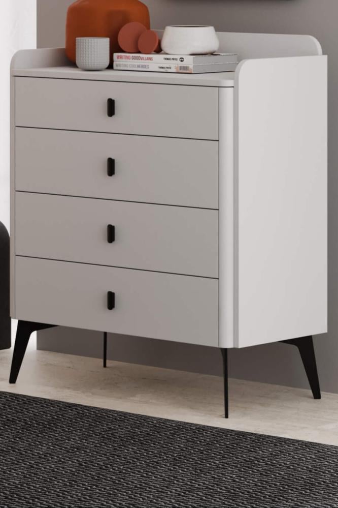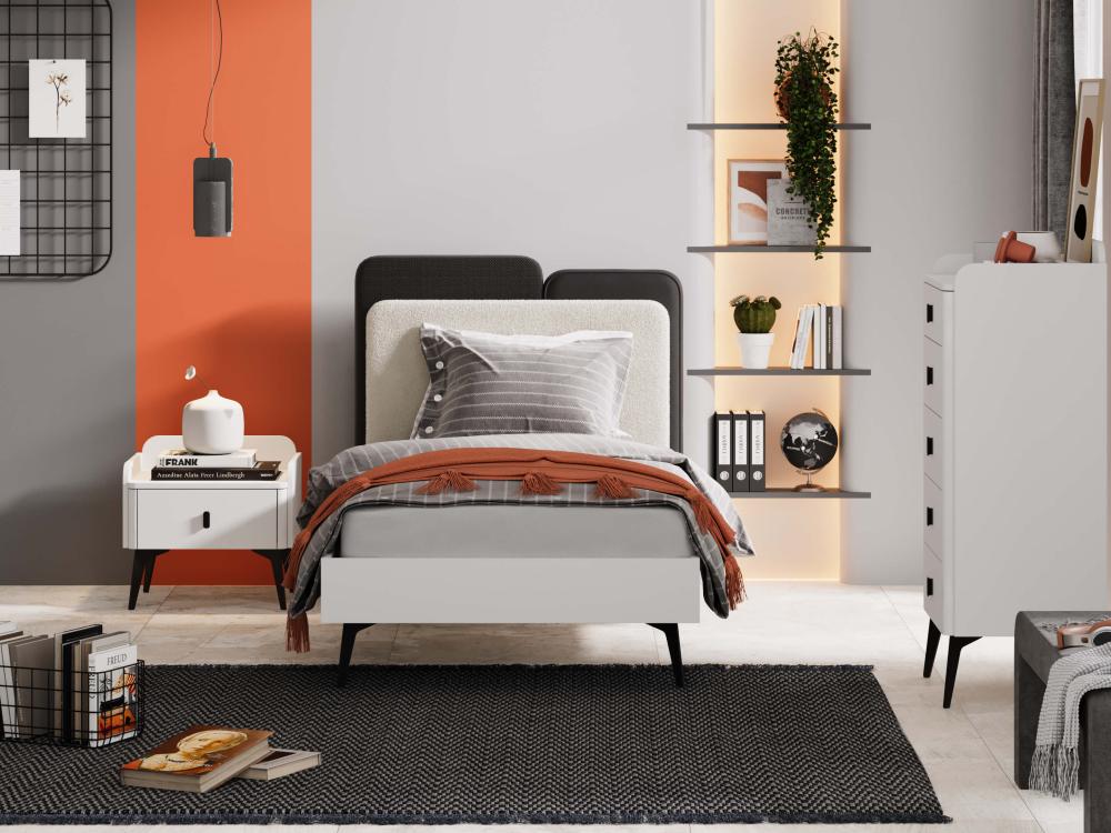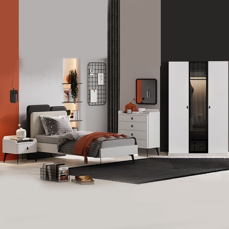 All pieces are made from high-quality Turkish wood with a melamine finish that is resistant to scratches and moisture. The set comes in white and is easy to assemble.