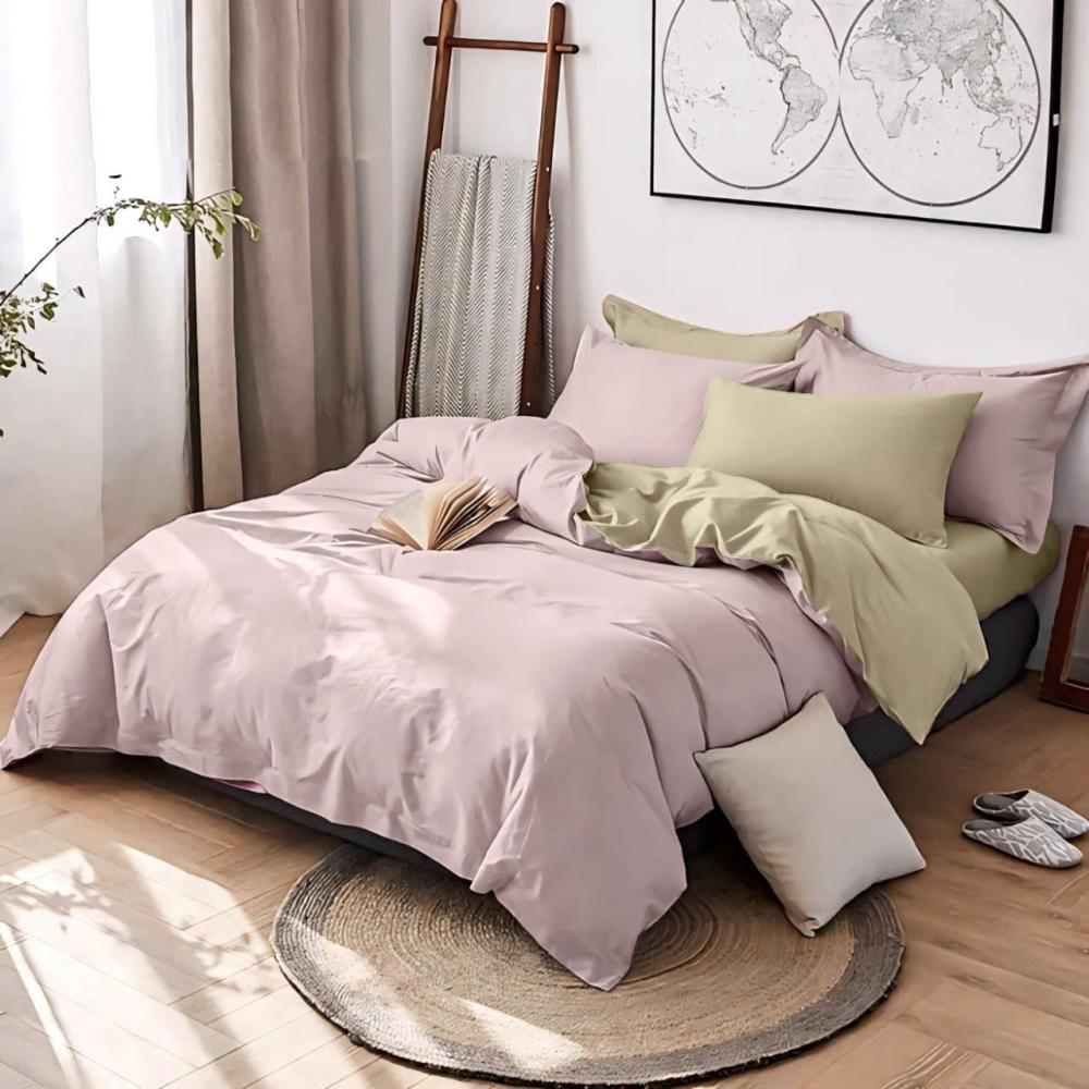 Add a touch of vitality and elegance to your bedroom with this modern double-colored bedspread set. The bedspread features a harmony between light beige and light flesh color, which enhances the beauty of the place and gives you a comfortable and distinctive sleeping experience. Thanks to the softness of its high-quality cotton material, the set ensures you feel comfortable and relaxed all night long.