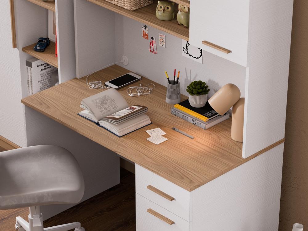 مكتب أطفال دراسي إيتو الميلا مع رف هو الخيار الأمثل لغرف الأطفال أو غرف المذاكرة الشبابية، يتميز بتصميمه العصري ولونه الأنيق "أبيض في خشبي" الذي يضفي لمسة دافئة ومريحة على الغرفة. يقدم هذا المكتب مساحة عملية تساعد على تنظيم الأدوات الدراسية والأنشطة اليومية بكفاءة، مع رف علوي يسهل ترتيب الكتب والملحقات.
